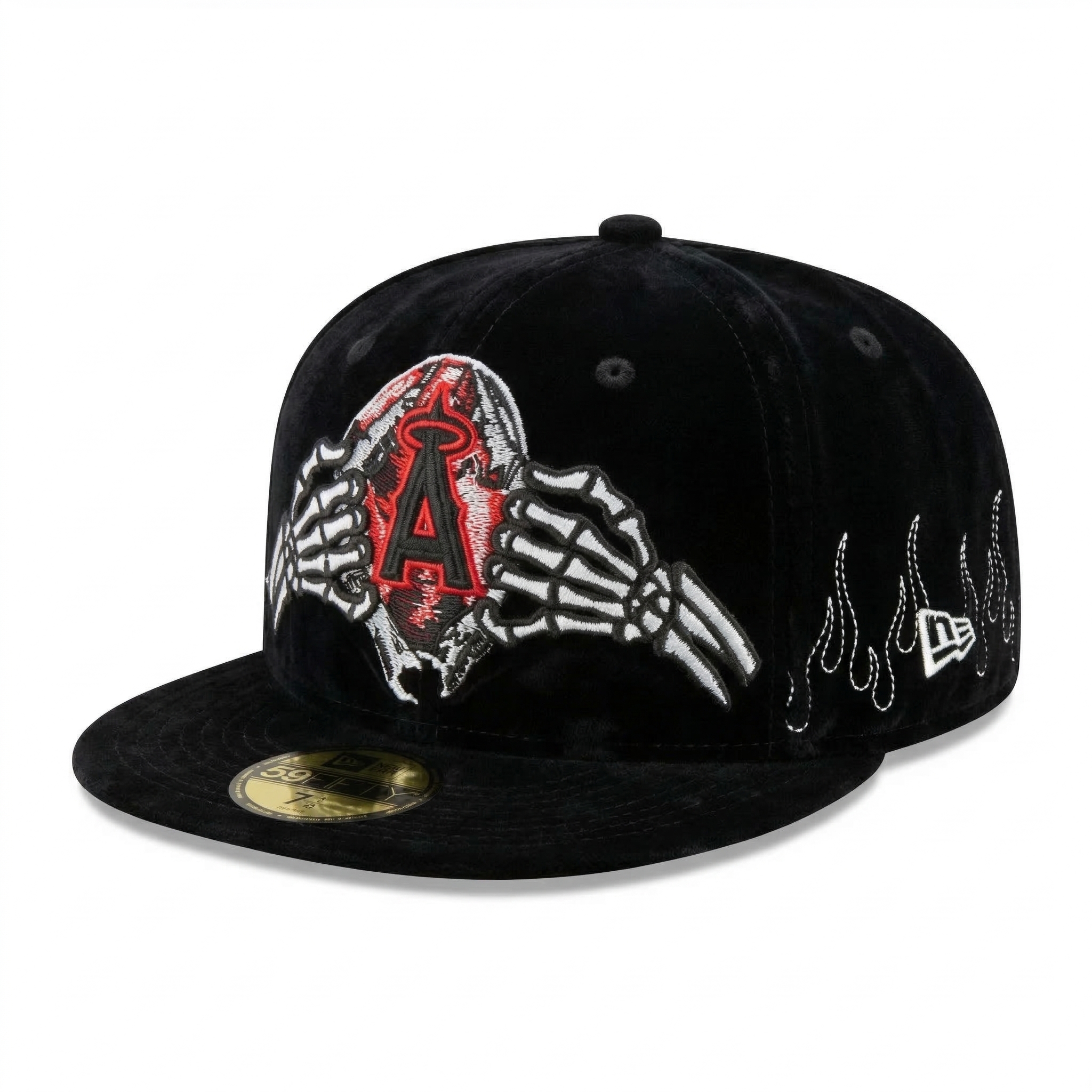 Custom LA Angels Skeleton Hands Black Velvet Fitted Hat - SEVEN HATS