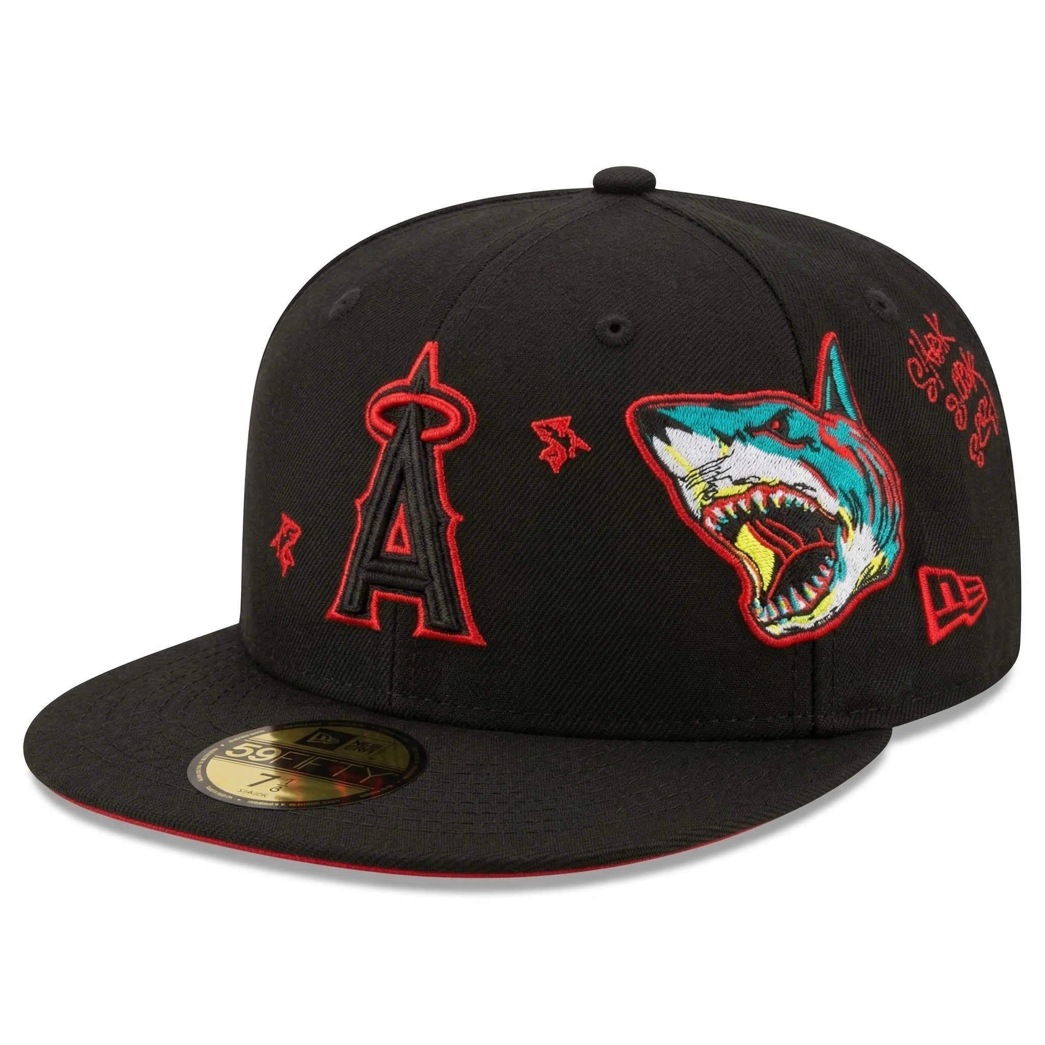 Los Angeles Angels "Ocean Predator" Custom Shark Edition Fitted Hat - Black / Red UV | SEVEN HATS