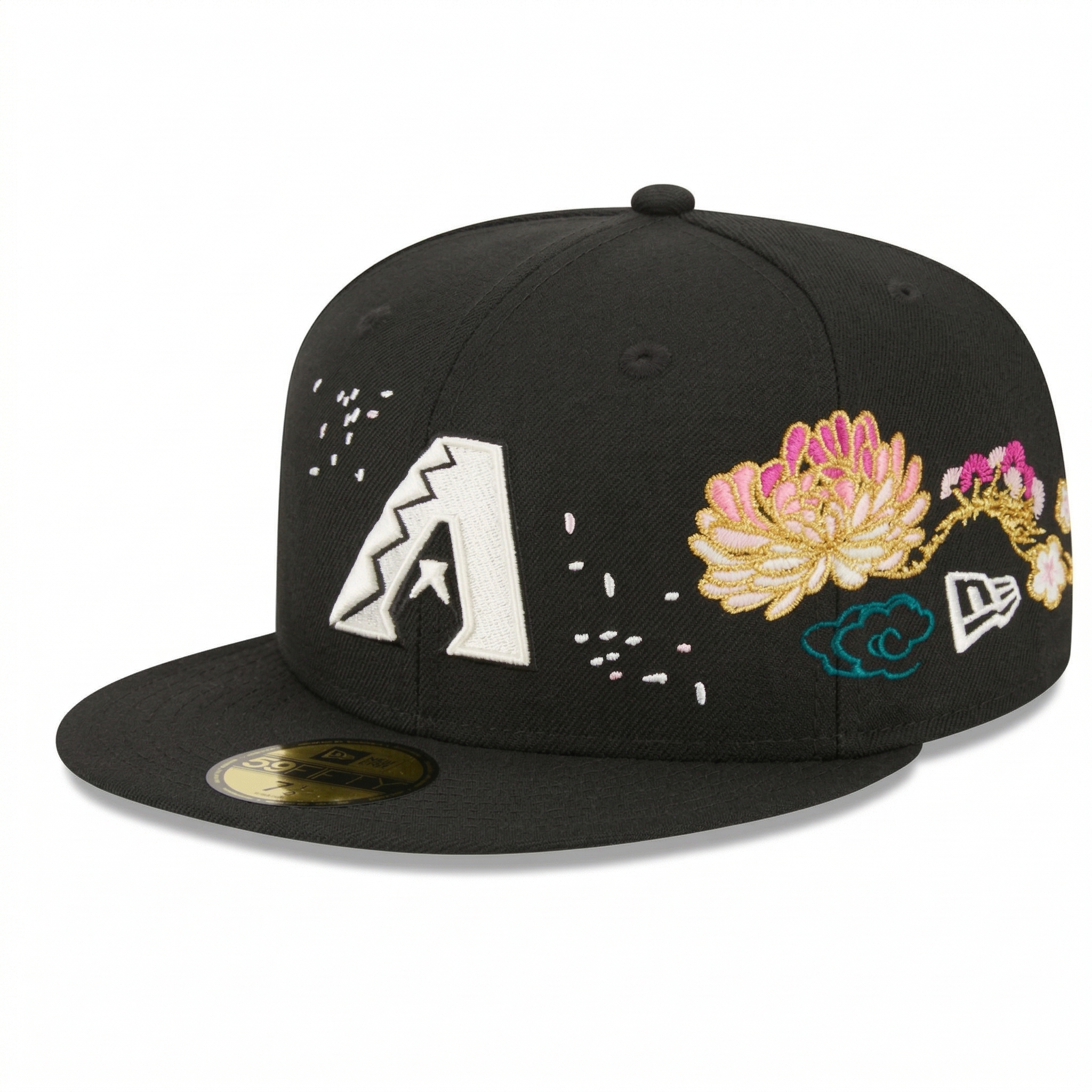 Arizona Diamondbacks Custom Floral Embroidered Fitted Hat, Black - SEVEN HATS