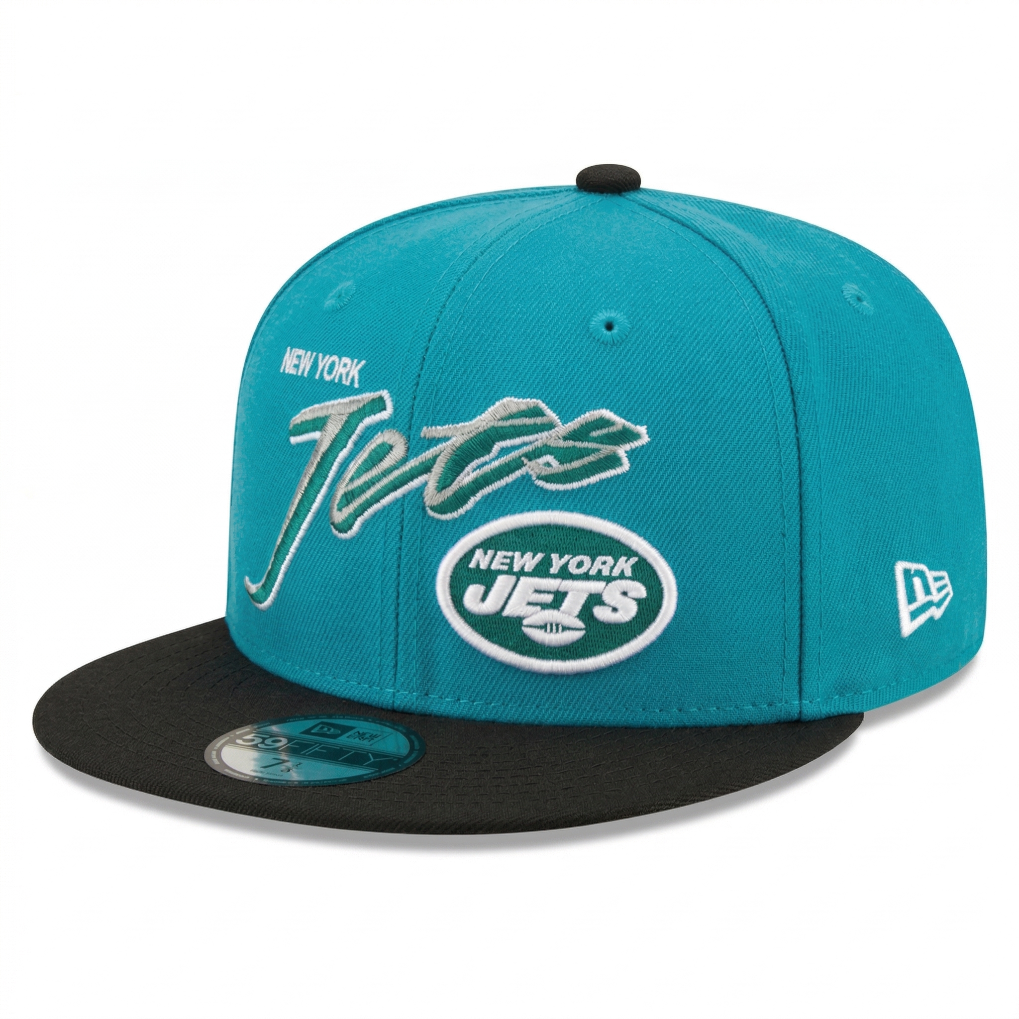 New York Jets Snapback Hat Custom Teal & Black Adjustable Cap - SEVEN HATS